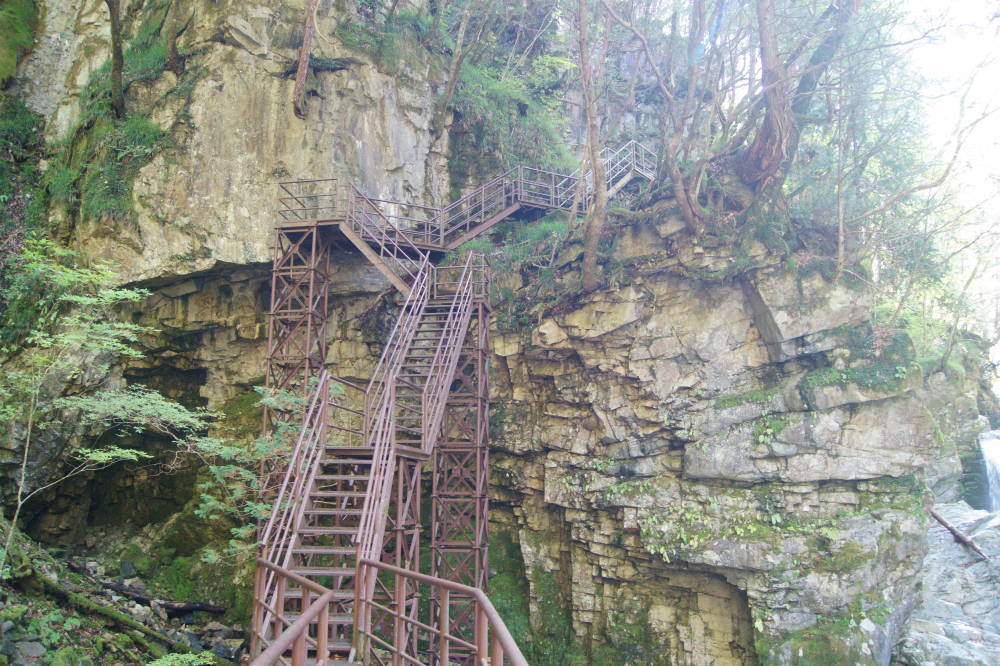 遊歩道はさらに上に上がっていきます。この階段もなかなかスリルがあります・・・