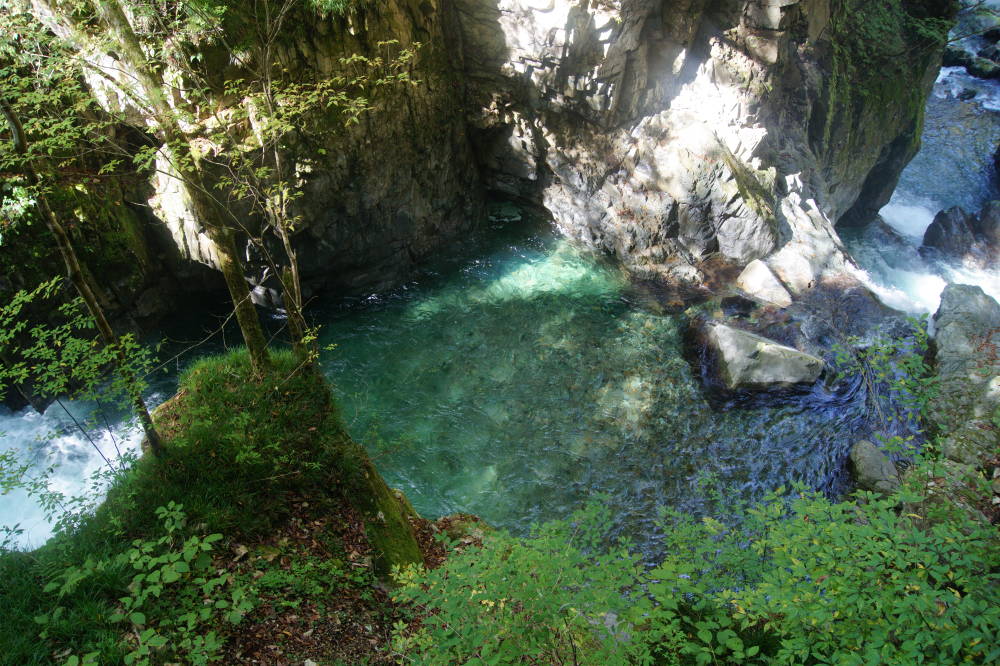 滝の上まで来ました!なんといっても下まで透き通ったエメラルドグリーンの川の水が綺麗でずっと見ていられます!