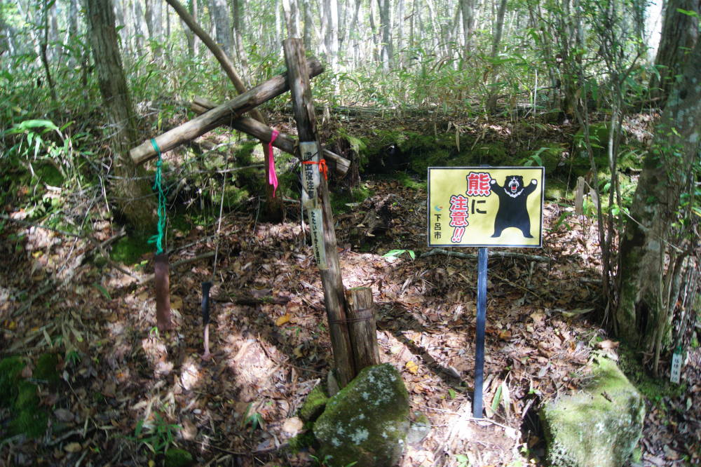 遊歩道には熊が出没もあるそうで、道中にはたたいて音を鳴らして通るよう促されています!