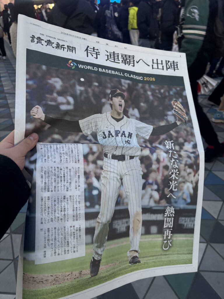 何故か?号外を配っていて、大谷さんの写真が前のWBCの時の物でした笑